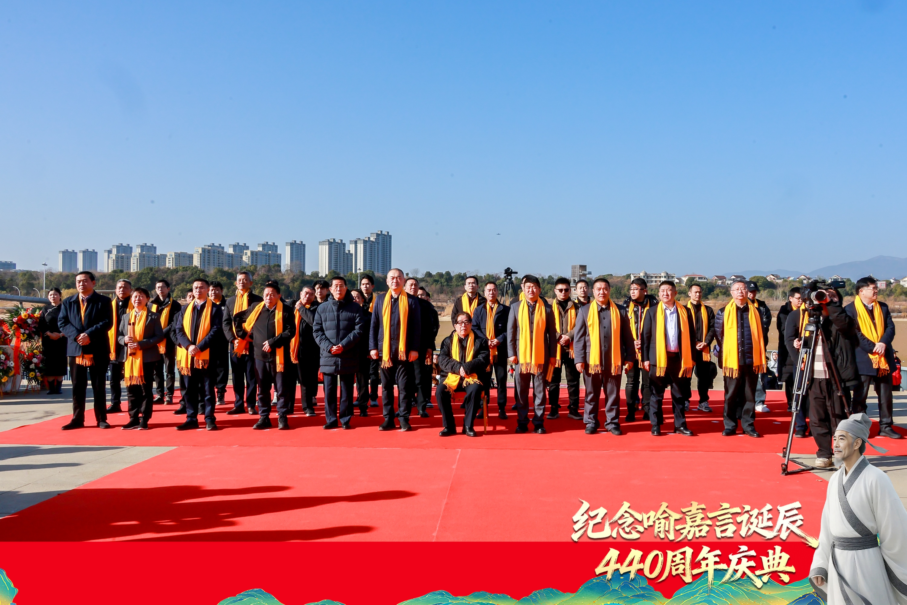 在全场嘉宾的共同见证下,张大宁、孙有智、熊建华、方庭、喻小勇五位领导嘉宾共同为喻嘉言铜像揭幕。随着红绸缓缓滑落,一尊庄重肃穆的喻嘉言铜像展现在世人面前。喻嘉言目光深邃,手握典籍,仿佛穿越440年的时光,依然在关切着苍生健康。现场礼花绽放、古琴声起、掌声雷动,全体人员向铜像行注目礼,表达对这位伟大医学先贤的崇高敬意。